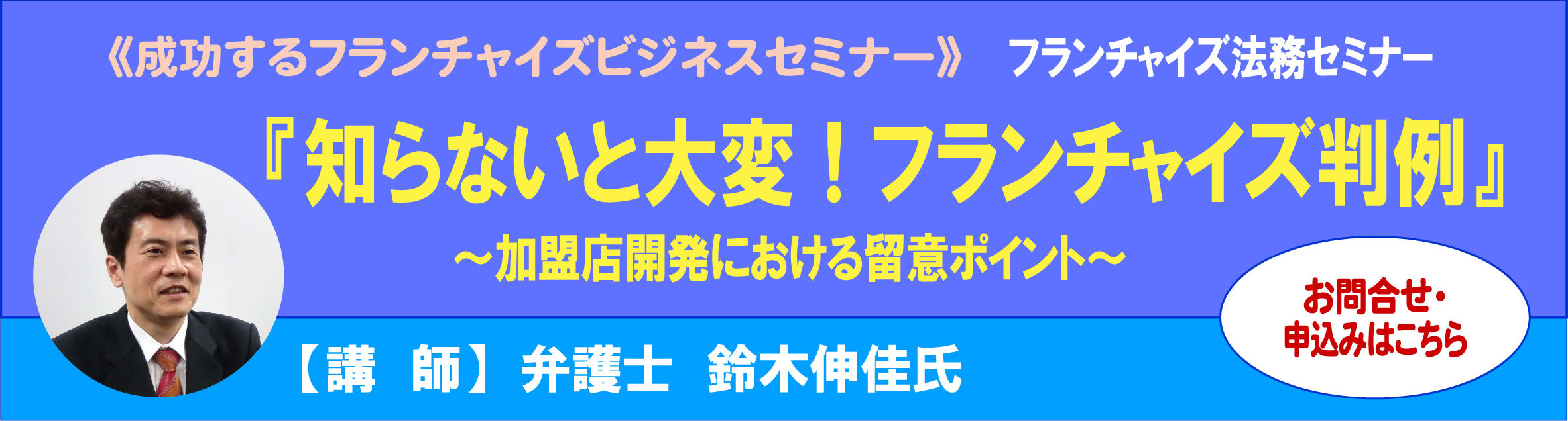 フランチャイズビジネスに精通した鈴木弁護士による「知らないではすまされないフランチャイズ判例」セミナーです。